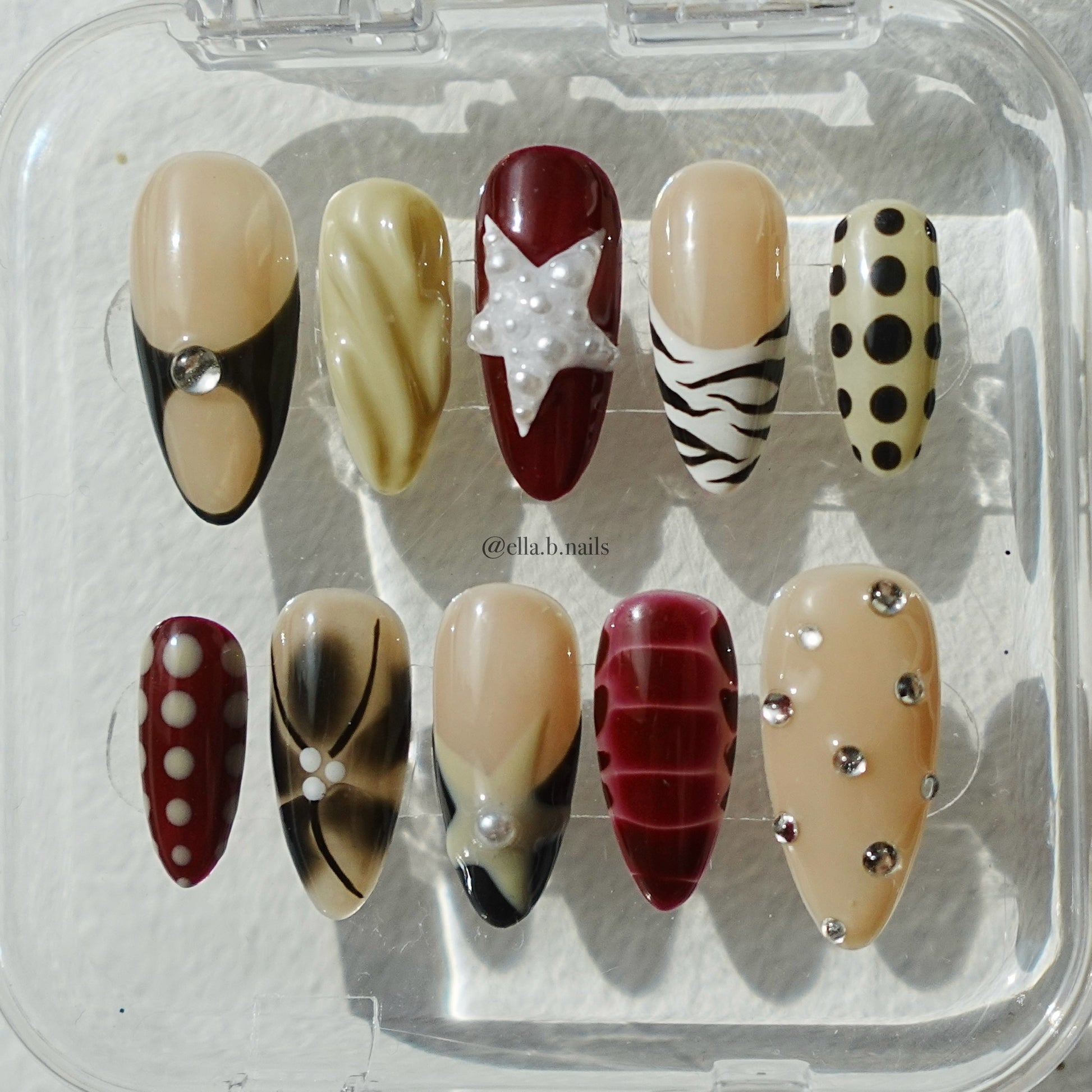 Please remember to measure your nail sizes carefully and multiple times, so you get the most accurate fit, I am not responsible for incorrect measurements and purchases cannot be refunded or returned. Also, keep in mind that there might be slight variations on sets as they're handmade.